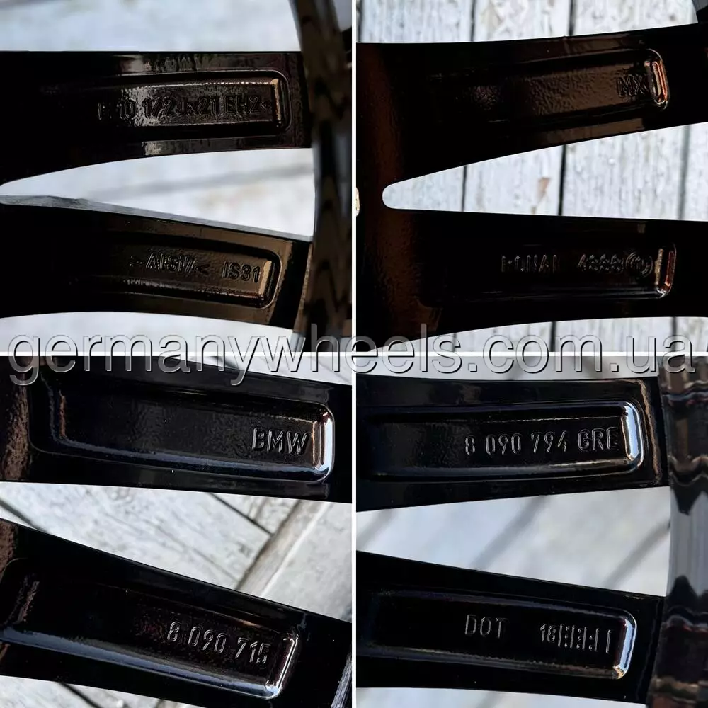 Комплект оригінальних дисків BMW 808m 8090716/8090794 R21 різноширокі. Диски стан: Нових, Оригінал, Не биті, Не варені, Не катані!. Параметри передніх дисків 10.5 дюймів (J), 31 виліт (ET), 66.6 мм центральний отвір (DIA), Параметри задніх дисків 11.5 дюймів (J), 43 виліт (ET), 66.6 мм центральний отвір (DIA)5х112 розболтування (PCD). Cерійний код: 8090716/ 8090794 . Вироблені в Мексиці.