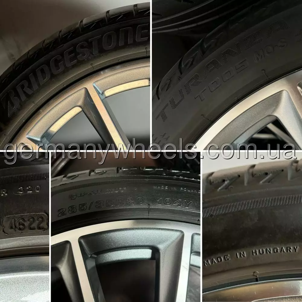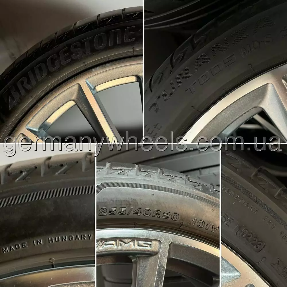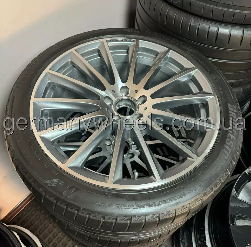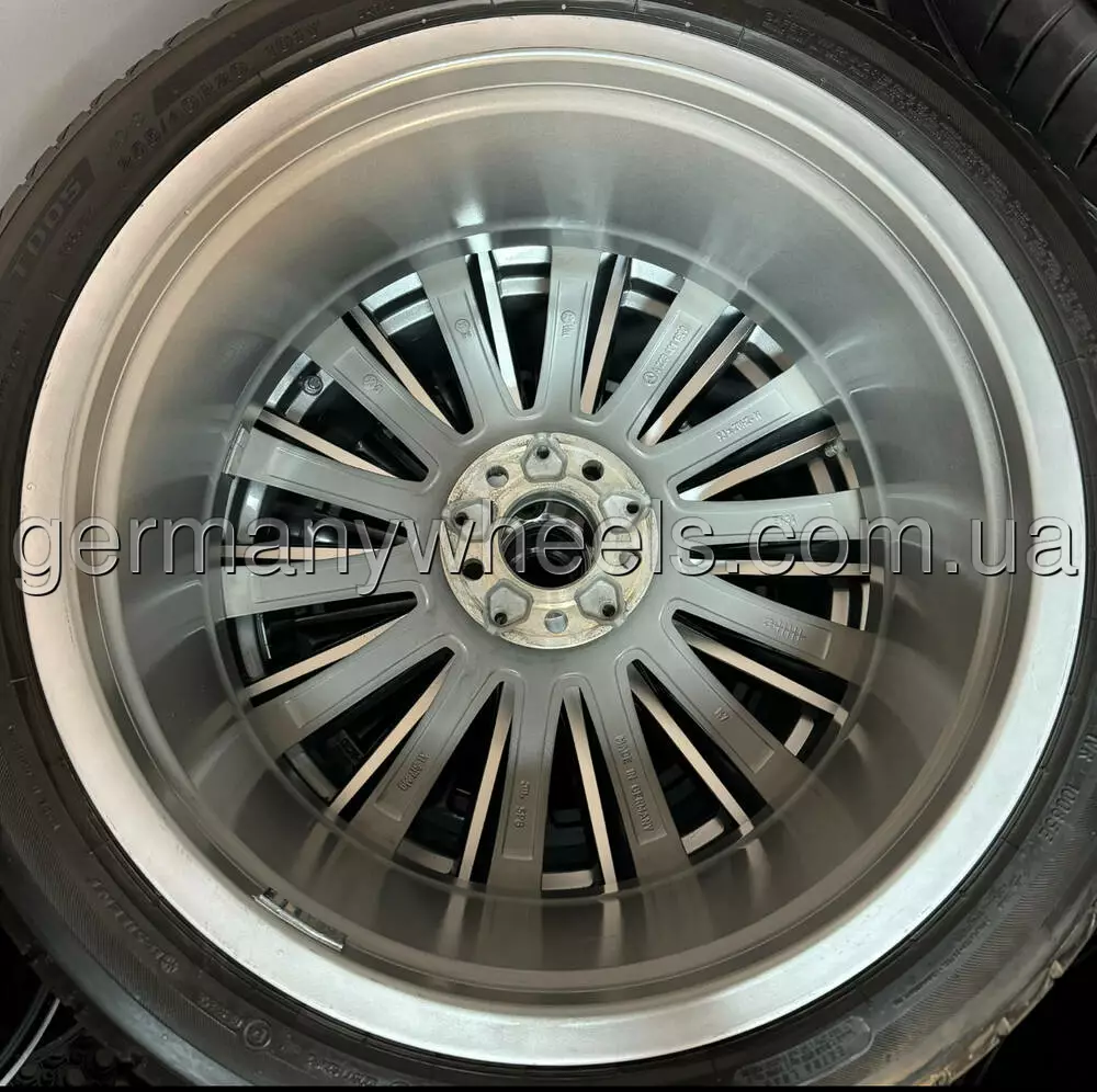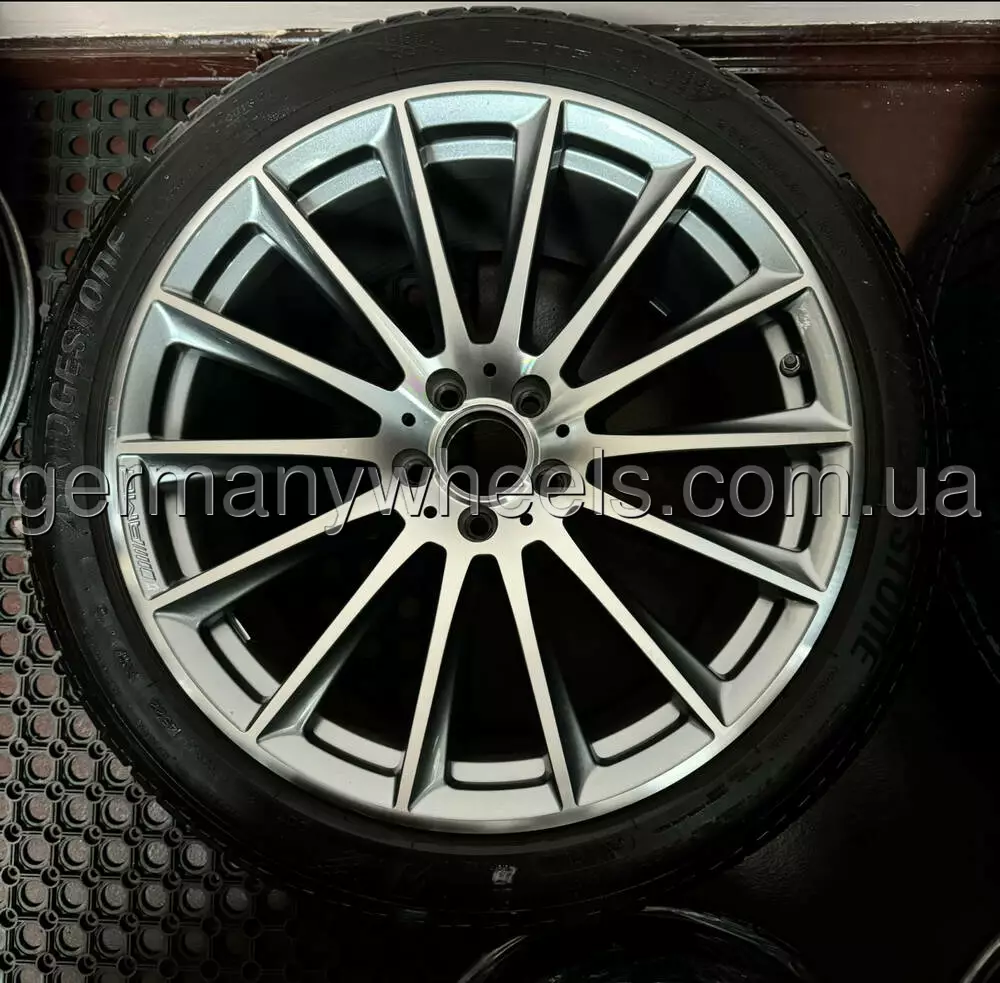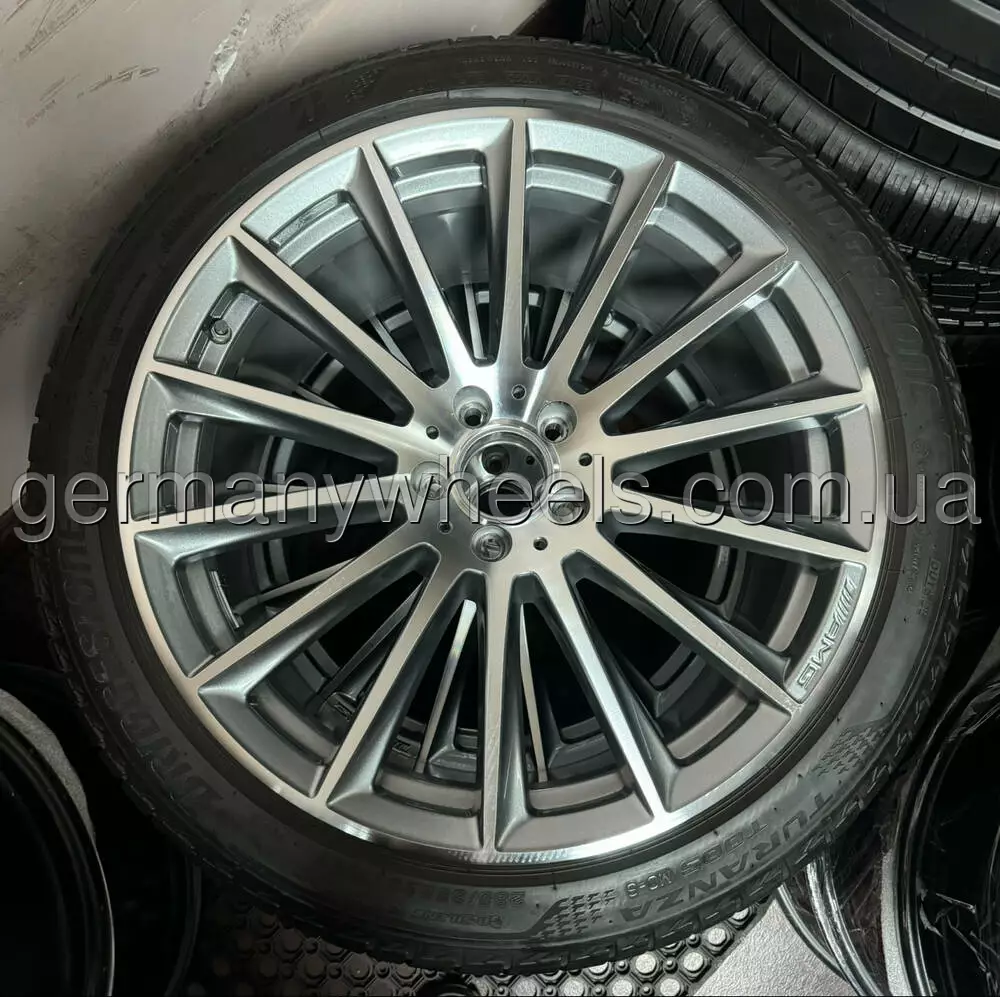 В продажу комплект оригінальних дисків MERCEDES різношироких у 20-му діамеьтрі. Диски у відміному стані та без дефектів, В заводській фарбі, Стан: Нових. В комплекті датчики тиску оригінальні та ковпачки оригінал з літніми шинами Bridgestone Turanza T005 MO-S Silent